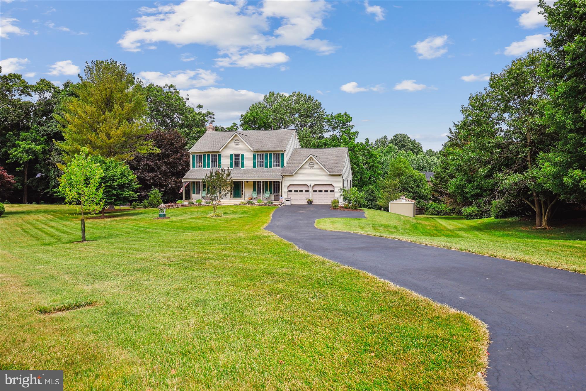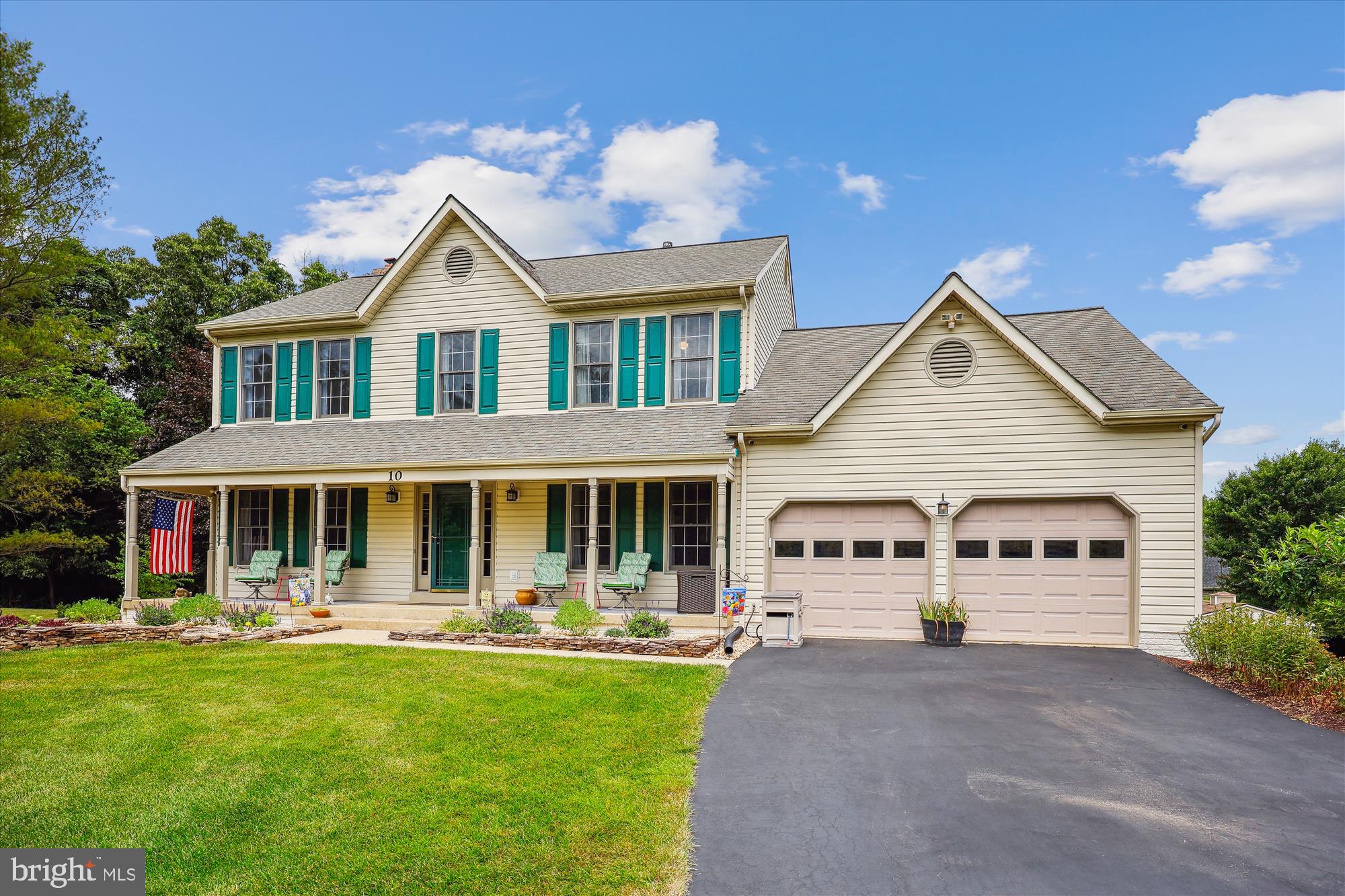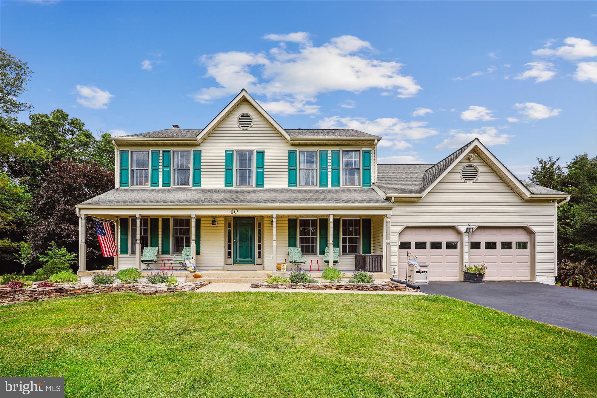 Welcome to 10 Canterfield Court...the serene sanctuary you have been waiting for. Tucked amidst lush greenery this wonderful home offers picturesque views of the perfectly manicured 1.14 acres. Nestled on a quiet cul-de-sac in sought after Greenridge Acres this 4 BR, 3.5 BA Colonial boasts a functional floorplan, quality craftsmanship at every turn, ensuring quality and comfort. As you approach, you are greeted with a long driveway and a pleasing front porch to enjoy cool summer evenings. The meticulously maintained interior boasts a center hall foyer with a formal dining room to the right that features gleaming hardwood floors, custom moldings and wrought iron chandelier. To the left is a gracious living room with hardwood floors and crown molding. Ahead is the updated kitchen which is truly a cook's delight with custom 42" white cabinetry with brushed nickel pulls, quartz counter tops, blue ceramic tile backsplash that adds a hint of color, black chrome SS appliances that include a 5-burner gas range with a pot filler above, ceramic tile wood look flooring and adjoining breakfast room. Adjacent to the breakfast room is the warm and inviting family room with hardwood floors, wood burning fireplace with mantel and Atrium doors to the amazing deck and gazebo. Not to be missed, on the other side of the kitchen is a mud room with spacious custom cabinets & pantry, hallway to the door to the 2-car garage, beautifully updated ceramic tile full bath and an office that could be used as a main level bedroom. Take special note of the newly upgraded carpet on the winding stairs to the upper level where you will find 4 large bedrooms featuring brand new carpet and a full bath. It includes a spacious primary bedroom with a ceiling fan w/light, cathedral ceiling, large walk-in closet and luxurious remodeled bath. It boasts wood-look ceramic tile floor, cherry wood vanity with double bowl sink, relaxing soaking tub and separate shower w/glass door and a skylight. The lower-level offers: a den/exercise room, updated half bath, a workshop with convenient peg board, laundry room with Kenmore washer & dryer and large carpeted recreation room with quiet sitting area to curl up with a good book. A sliding glass door opens to a spectacular level backyard with unlimited recreational amenities. The yard also features a potting shed for the gardener in the house and a large storage shed for your outdoor equipment. This is truly a special home to entertain family and friends indoors or outdoors, bar-b-ques out on the two-tier deck and quiet evenings in your gazebo. What a glorious private setting! Don't miss the opportunity to own this exceptional home.