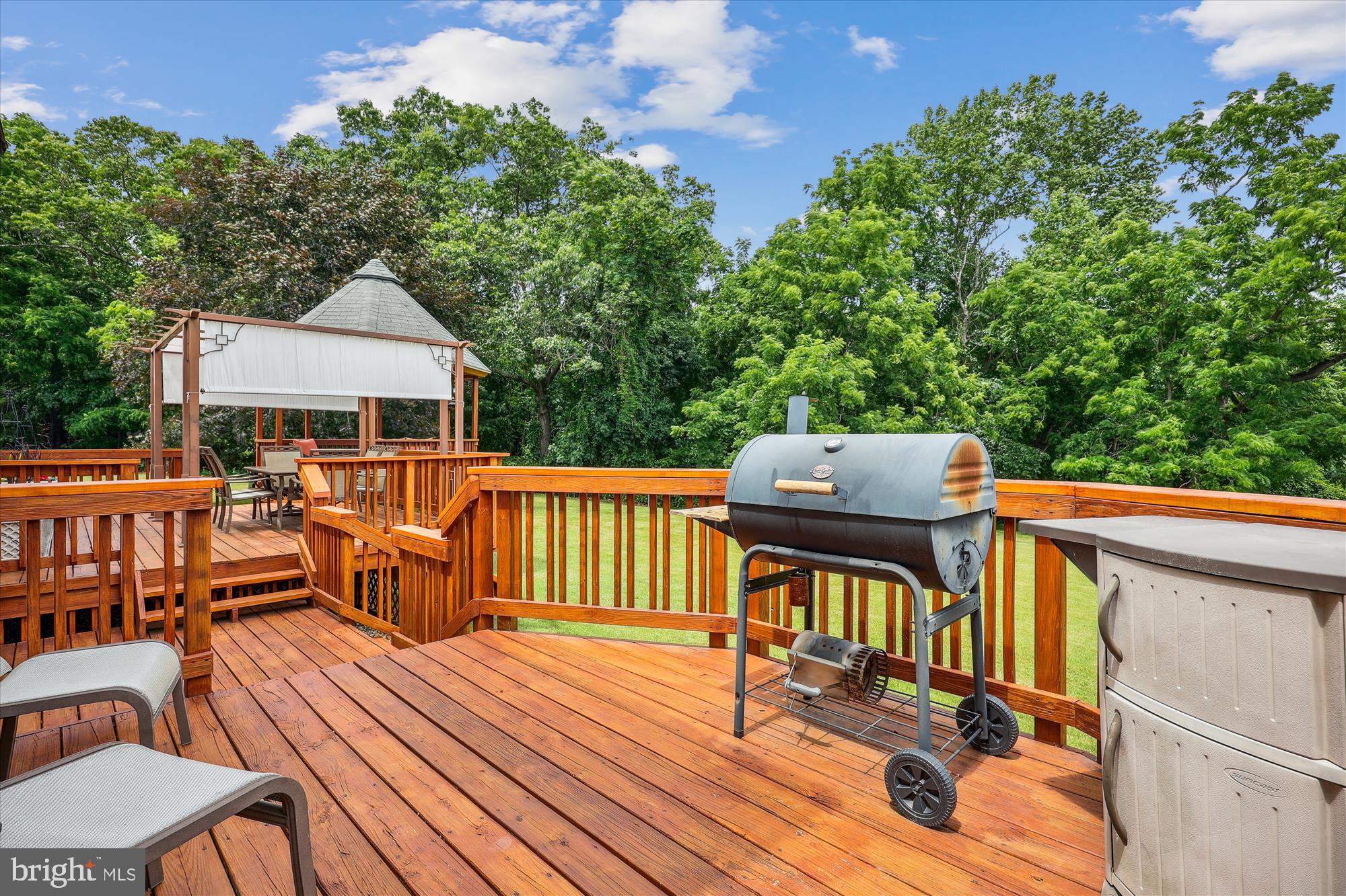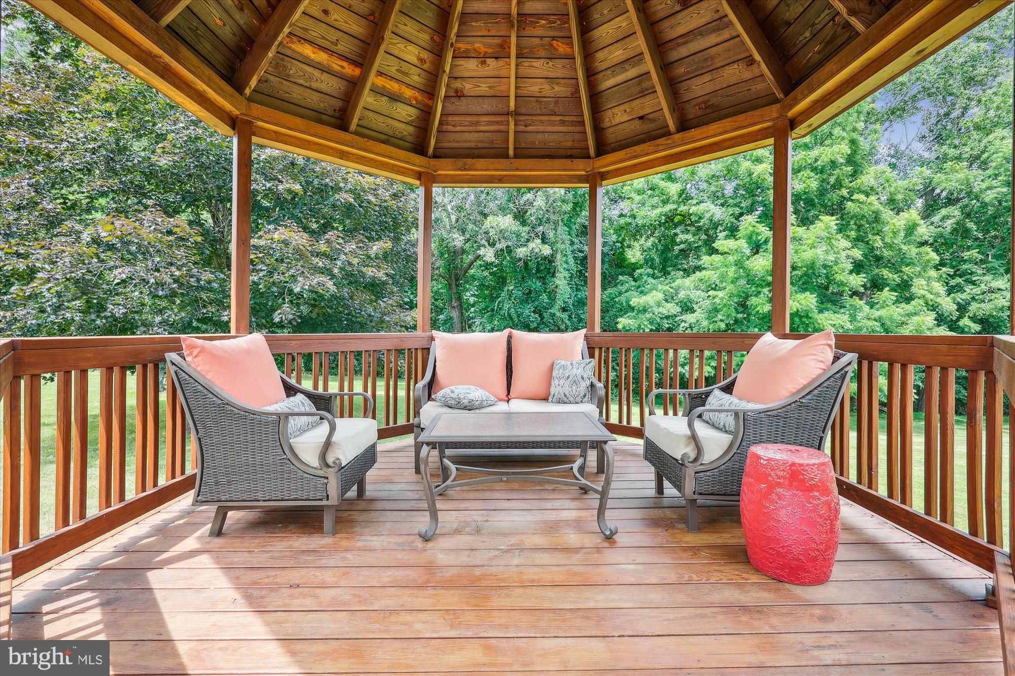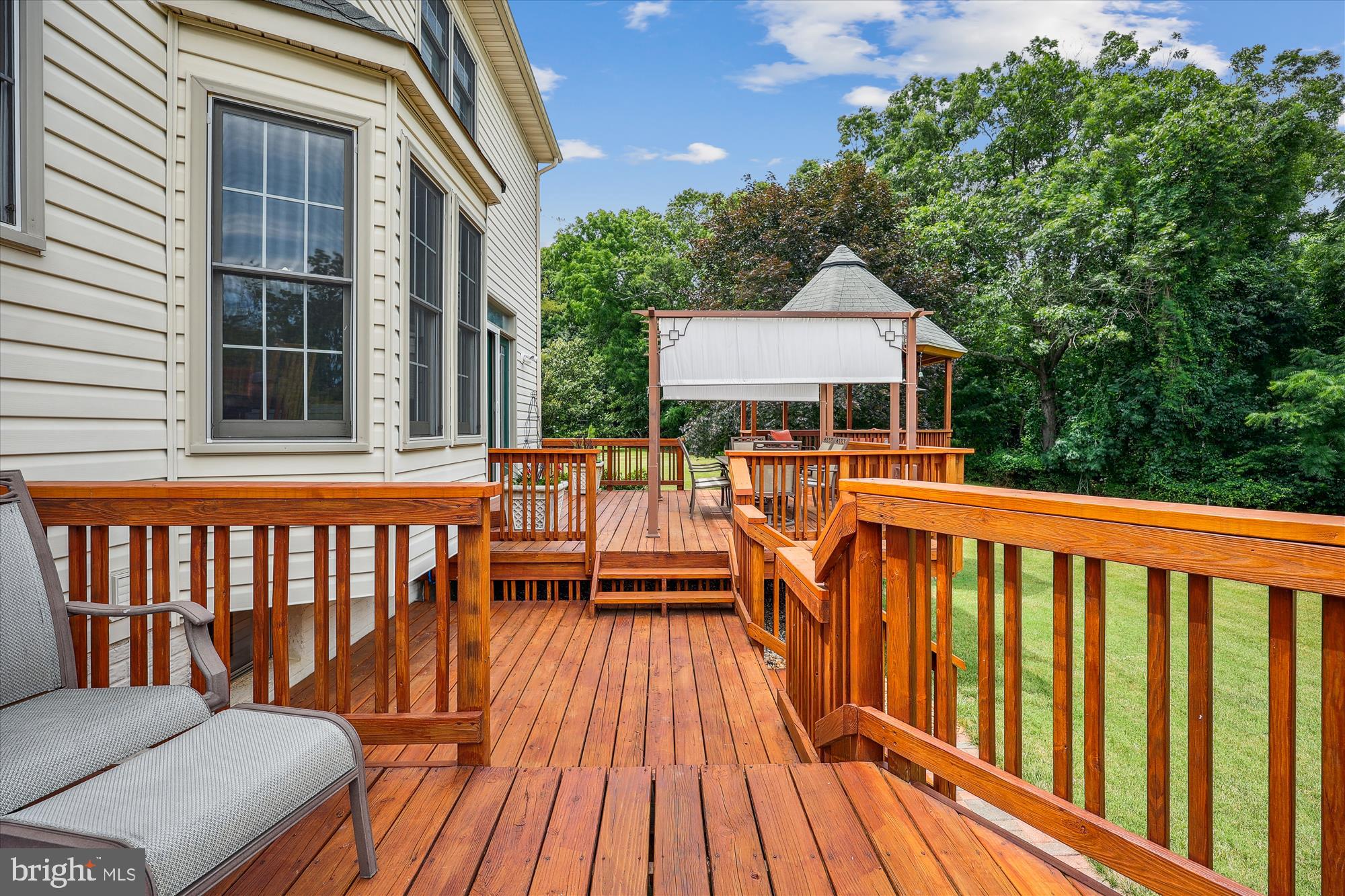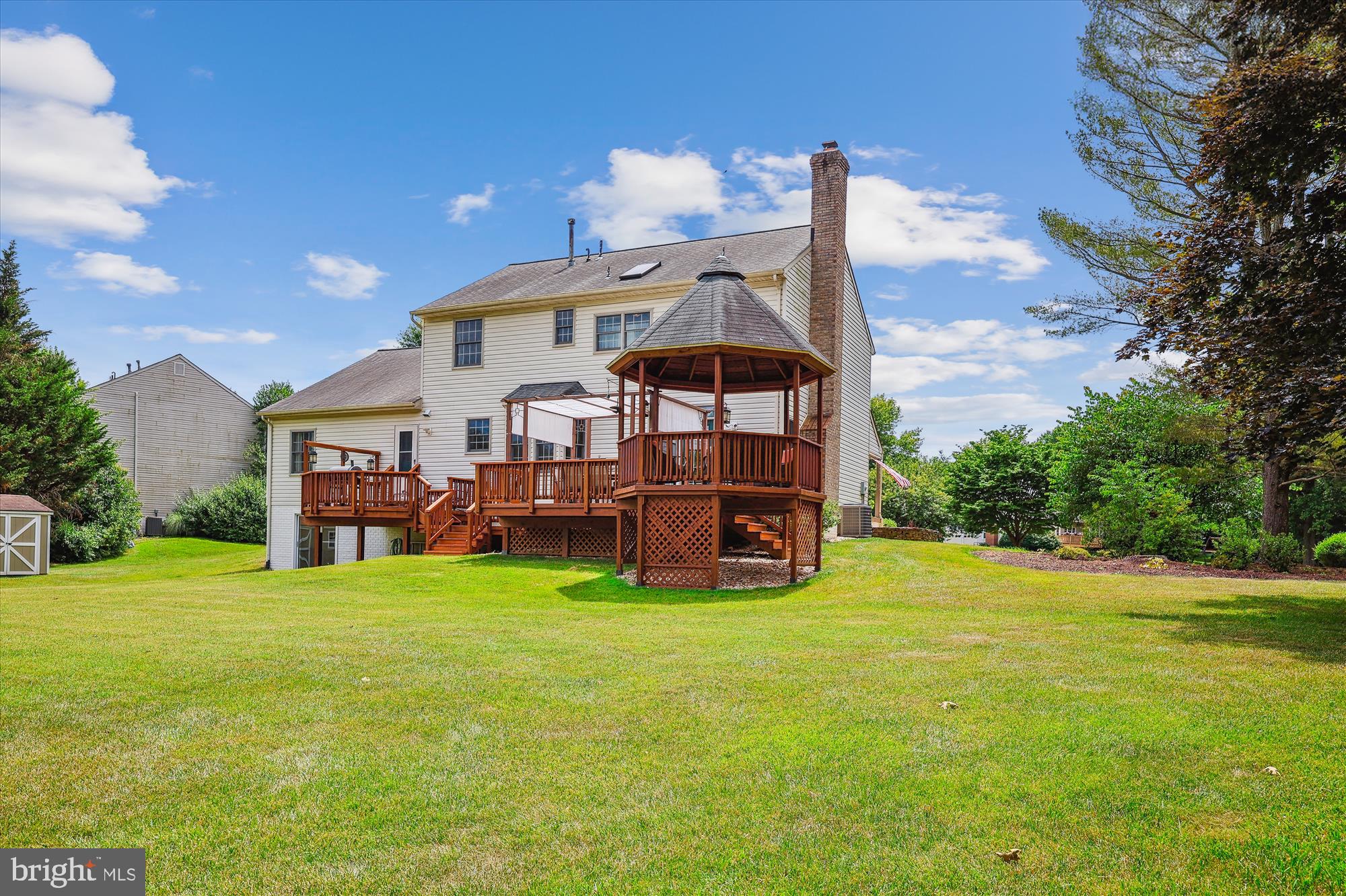 Welcome to 10 Canterfield Court...the serene sanctuary you have been waiting for. Tucked amidst lush greenery this wonderful home offers picturesque views of the perfectly manicured 1.14 acres. Nestled on a quiet cul-de-sac in sought after Greenridge Acres this 4 BR, 3.5 BA Colonial boasts a functional floorplan, quality craftsmanship at every turn, ensuring quality and comfort. As you approach, you are greeted with a long driveway and a pleasing front porch to enjoy cool summer evenings. The meticulously maintained interior boasts a center hall foyer with a formal dining room to the right that features gleaming hardwood floors, custom moldings and wrought iron chandelier. To the left is a gracious living room with hardwood floors and crown molding. Ahead is the updated kitchen which is truly a cook's delight with custom 42" white cabinetry with brushed nickel pulls, quartz counter tops, blue ceramic tile backsplash that adds a hint of color, black chrome SS appliances that include a 5-burner gas range with a pot filler above, ceramic tile wood look flooring and adjoining breakfast room. Adjacent to the breakfast room is the warm and inviting family room with hardwood floors, wood burning fireplace with mantel and Atrium doors to the amazing deck and gazebo. Not to be missed, on the other side of the kitchen is a mud room with spacious custom cabinets & pantry, hallway to the door to the 2-car garage, beautifully updated ceramic tile full bath and an office that could be used as a main level bedroom. Take special note of the newly upgraded carpet on the winding stairs to the upper level where you will find 4 large bedrooms featuring brand new carpet and a full bath. It includes a spacious primary bedroom with a ceiling fan w/light, cathedral ceiling, large walk-in closet and luxurious remodeled bath. It boasts wood-look ceramic tile floor, cherry wood vanity with double bowl sink, relaxing soaking tub and separate shower w/glass door and a skylight. The lower-level offers: a den/exercise room, updated half bath, a workshop with convenient peg board, laundry room with Kenmore washer & dryer and large carpeted recreation room with quiet sitting area to curl up with a good book. A sliding glass door opens to a spectacular level backyard with unlimited recreational amenities. The yard also features a potting shed for the gardener in the house and a large storage shed for your outdoor equipment. This is truly a special home to entertain family and friends indoors or outdoors, bar-b-ques out on the two-tier deck and quiet evenings in your gazebo. What a glorious private setting! Don't miss the opportunity to own this exceptional home.