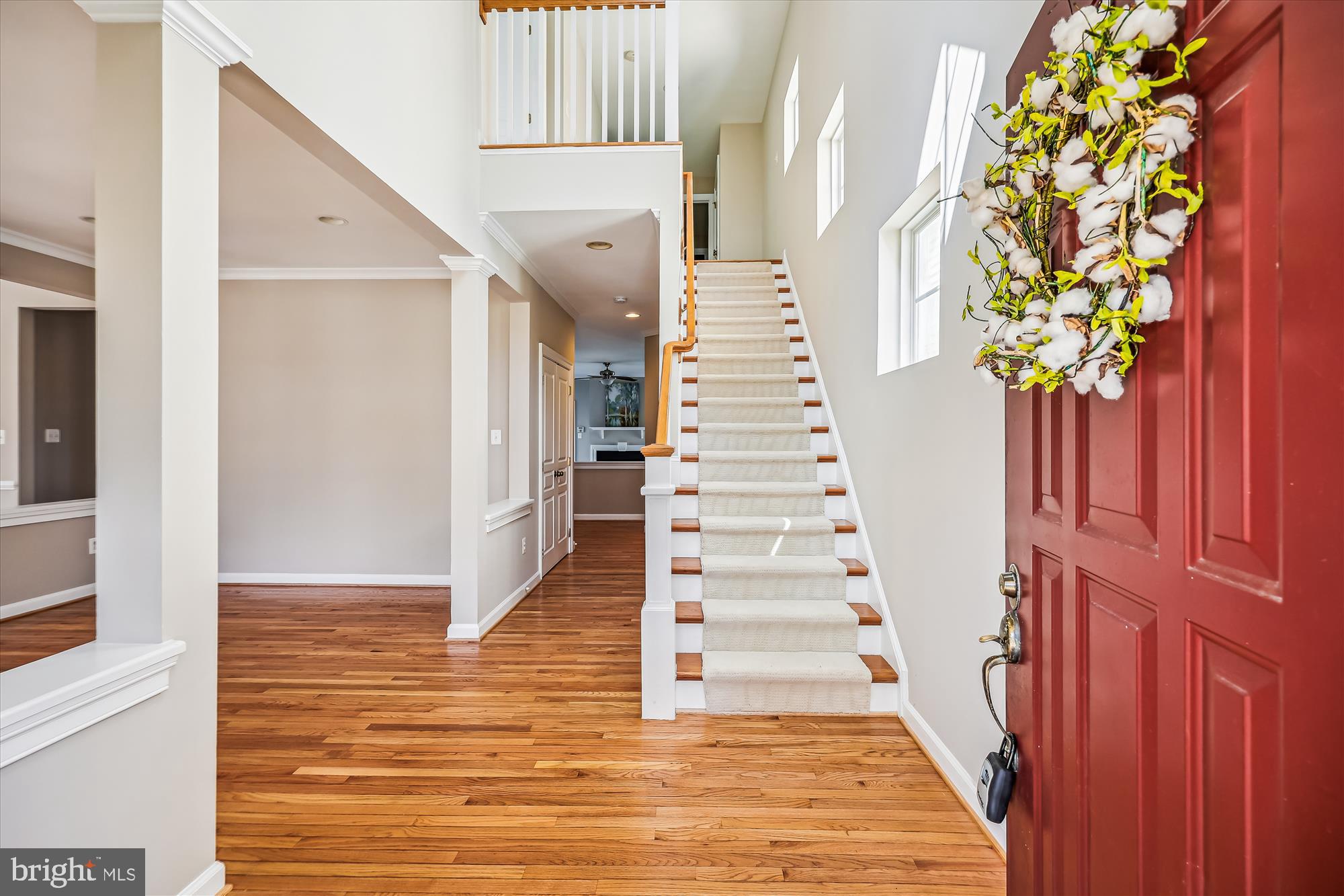 Crafted with excellence, this pristine Stickley model offers elegant living and inimitable charm. A wonderful front porch invites you into this four bedroom, 3.5 bath home that lends itself to both formal entertaining and everyday casual living. Just off the two-story reception hall, knee walls make the adjoining living and dining rooms feel airy and open. In the rear of the home is the family room, with its gas fireplace, brand new carpet and ceiling fan with light. It opens onto a sunny kitchen/morning room with center island cooktop. A French door opens to the patio and fenced backyard. Small craftsman-style windows lead you up the staircase, where you will find the primary bedroom suite. Here, space abounds, providing a sumptuous private retreat that includes a sitting room, walk-in closet and bath. The private ceramic tile bath boasts "his and her vanities", Kohler soaking tub, separate glass enclosed shower and water closet. At the rear of the home are a full ceramic tile bath with double bowl vanity & tub/shower and two more generous size bedrooms. The lower level is very versatile, offering a huge, carpeted recreation room, true 4th bedroom with a walk-in closet and full updated bath with unique vanity and tub/shower. Move-in ready this beautiful Colonial has been updated with newly refinished hardwood floors on the main level, brand new upgraded carpet on the top two levels & stairs, Gas heat & CAC (2021), Zone 2 (2017), Gas Hot Water Heater (2021) and the roof was replaced in 2018. Two car garage. Located in sought after Watkins Pond in King Farm - an exciting mixture of single-family homes, townhomes & condominiums within acres of parkland and ponds developed to create an atmosphere of human interaction in a friendly urban village. It boasts boutiques, shopping, restaurants and an abundance of recreational amenities. All this and you are minutes from I 270 "High Tech Corridor", Universities at Shady Grove and the Shady Grove Metro. Commuting throughout the Washington Metropolitan area will be a breeze. Don't miss out on this special home!