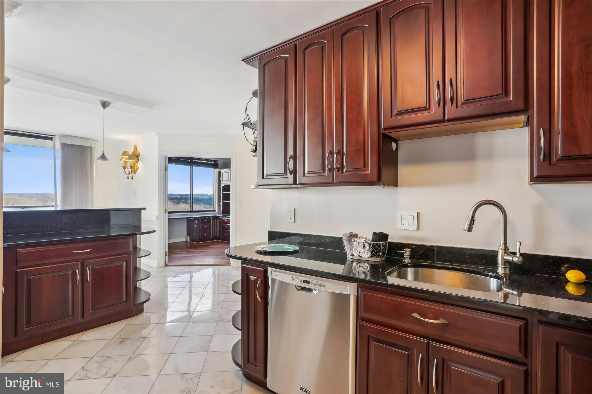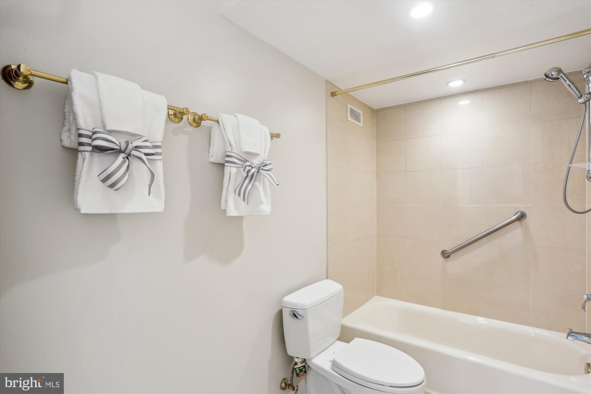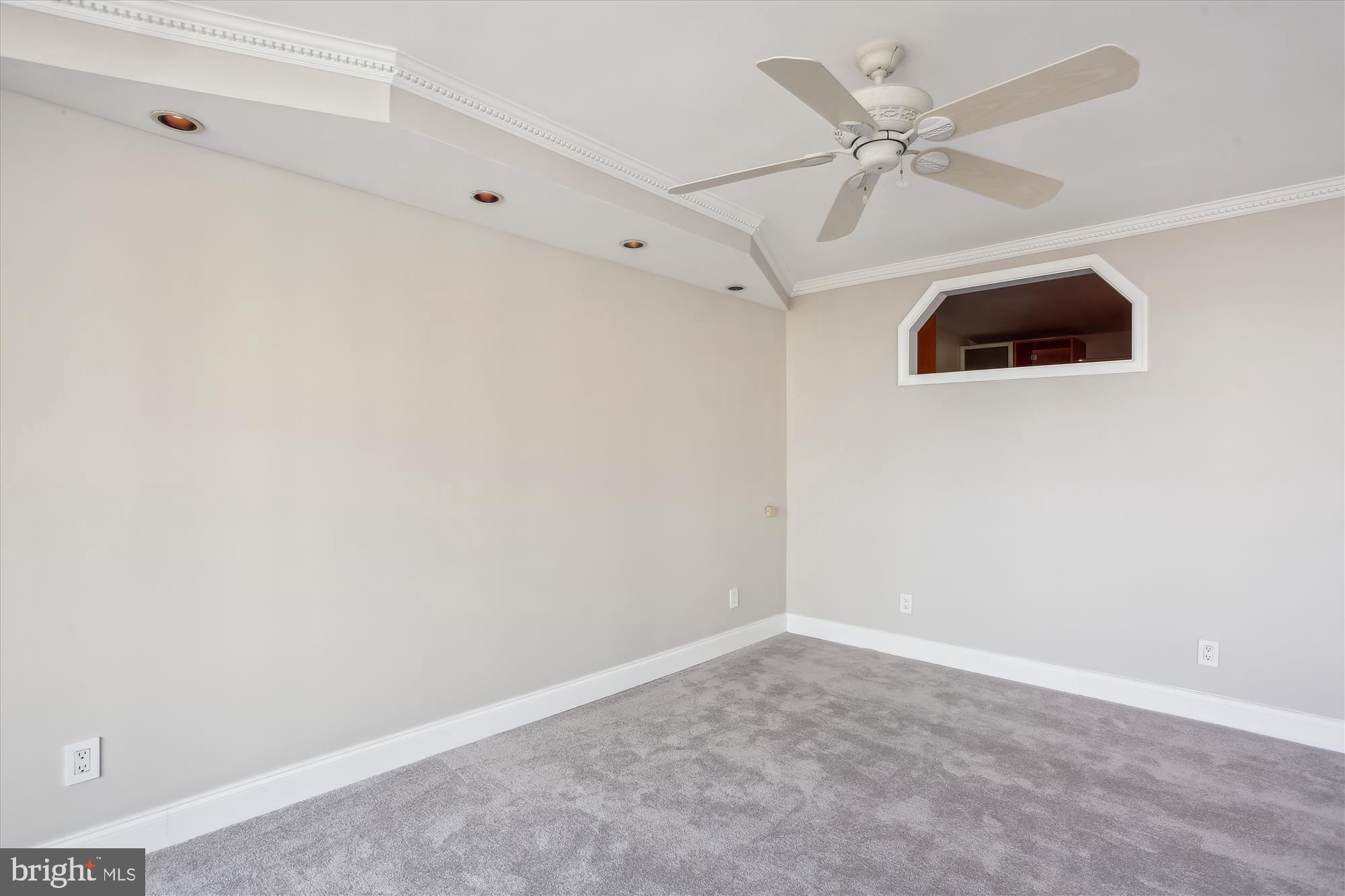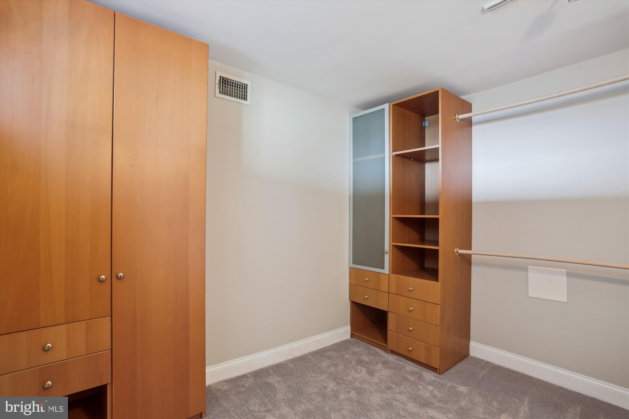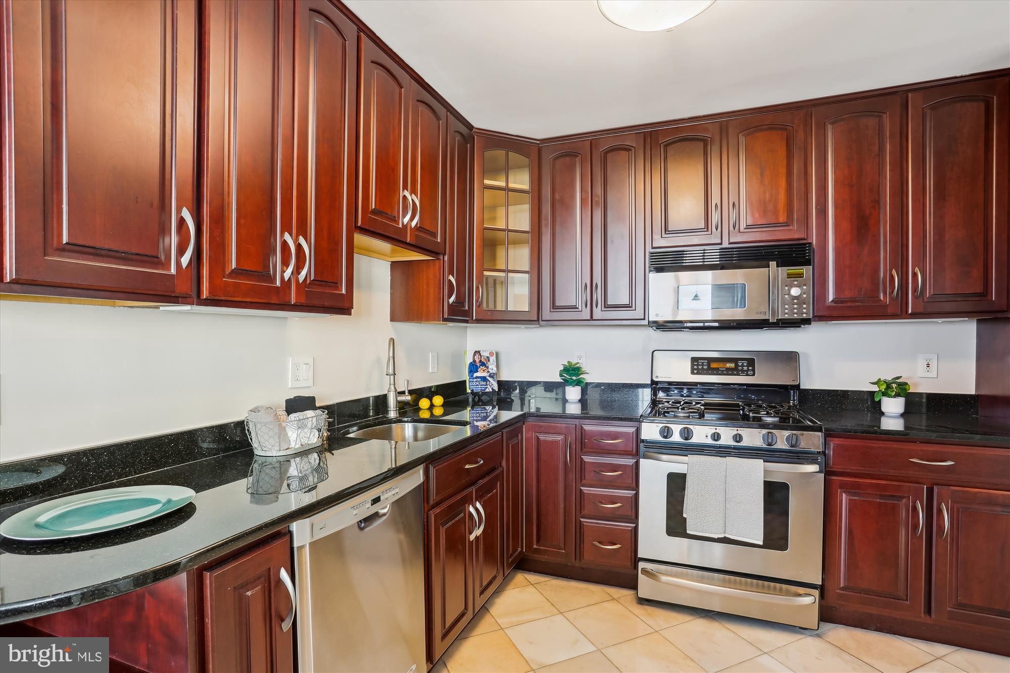 Welcome to The Promenade! Its sought-after location offers year-round resort style living in the heart of Bethesda. As you enter the foyer of this luxurious two bedroom, two bath apartment you will surely be impressed with its open concept living space. The entrance boasts two convenient guest closets with ceramic tile flooring that stretches throughout the main living areas. The sun -filled living room is richly designed with crown molding and is the perfect spot to entertain family and friends. The focal point of the home is the gourmet kitchen, featuring an abundance of custom cherry 42" cabinets that include a built-in pantry, ceramic tile backsplash, granite counter tops, stainless steel appliances (gas cooking) and large breakfast bar with seating for six. Enjoy your first cup of coffee in the dining room adjacent to the kitchen. Its sliding glass door opens to a generous size balcony with a picturesque view of the pool. One of the highlights of this unit is the handsome design of its home office/bonus room with lighted French doors, hardwood floors and built-in cabinets and desk. All anyone would ever need to work from home. The sweeping primary bedroom suite is extraordinary....brand new upgraded carpet, crown molding, recessed lights, spacious sitting room and sleeping room with ceiling fan with light and sliding glass door with second balcony. The closets in this suite are unbelievable with mirrored door closet, huge walk-in closet with custom built-ins and an additional walk-in closet in the primary bath. The luxury ceramic tile bath boasts a cherry vanity with double bowl sink with granite top and tub/shower. The second bedroom on the opposite side of the apartment is equally well appointed. Lighted French door welcomes you to this spacious bedroom with ceramic tile flooring, wall sconces, spacious walk-in closet, large window that floods the room with natural light and a second private bath. The bath features a long cherry vanity with a single sink with granite top and glass enclosed tub/shower. With its neutral decor and fresh paint this nearly 2000 sq. ft. apartment is ready for the buyer that demands perfection. Plenty of natural light and modern finishes complement the overall look and feel in this elegant unit. In addition, there are two of the best garage spaces in the building near the South elevator. The monthly fee includes property taxes, all utilities, basic cable, and access to amenities. The resort-style Promenade complex offers a vast array of amenities...indoor and outdoor pools, tennis and pickleball courts, state of the art fitness center, community garden, library, etc. The retail arcade includes Chef Tony's restaurant, grocery store/deli, dry cleaners, travel agent, and beauty salon. Don't miss your opportunity to experience luxury living, beautiful views, and unmatched amenities. The Promenade has it all!